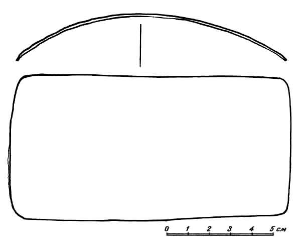 Obr. 10 hradiště Gorodok, konec 10. – 12. st., nalezena 1 lamela, 1 – rozměry dochované části 54x 30-32mm, tloušťka 1mm, Ostopolovskoe selišče, konec 10. – 11. st., nalezeno 7 lamel, 2 - rozměry dochované části 45x25mm, tloušťka 2mm, datováno do 11. st., 3 – rozměry 51x26-30mm, tloušťka 1,5mm, 4 – rozměry 52x24-28mm, tloušťka 1,5mm, 5 - rozměry dochované části 37x28-30mm, tloušťka 2mm, 6 - rozměry dochované části 51x26-30mm, tloušťka 2mm7 - rozměry dochované části 35x25mm, tloušťka 2mm, 8 – rozměry 52x26-30mm, tlouštka 2mm.