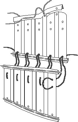 Na dalším obrázku pak vidíme předpokládaný systém šněrování lamel jak navzájem tak jednotlivých řad pomocí jednoho řemínku